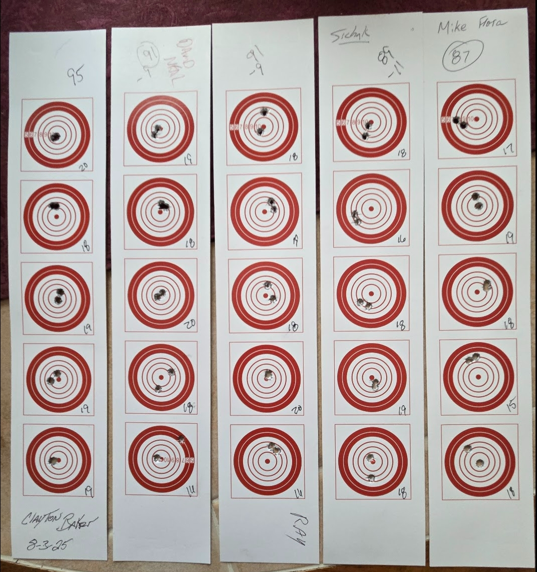 Clayton came out on top again with his challenge target with a score of 95, David and Ray both tied for 2nd with a score of 91, Shawn came in 3rd with a 89 and Mike was 4th with a 87.